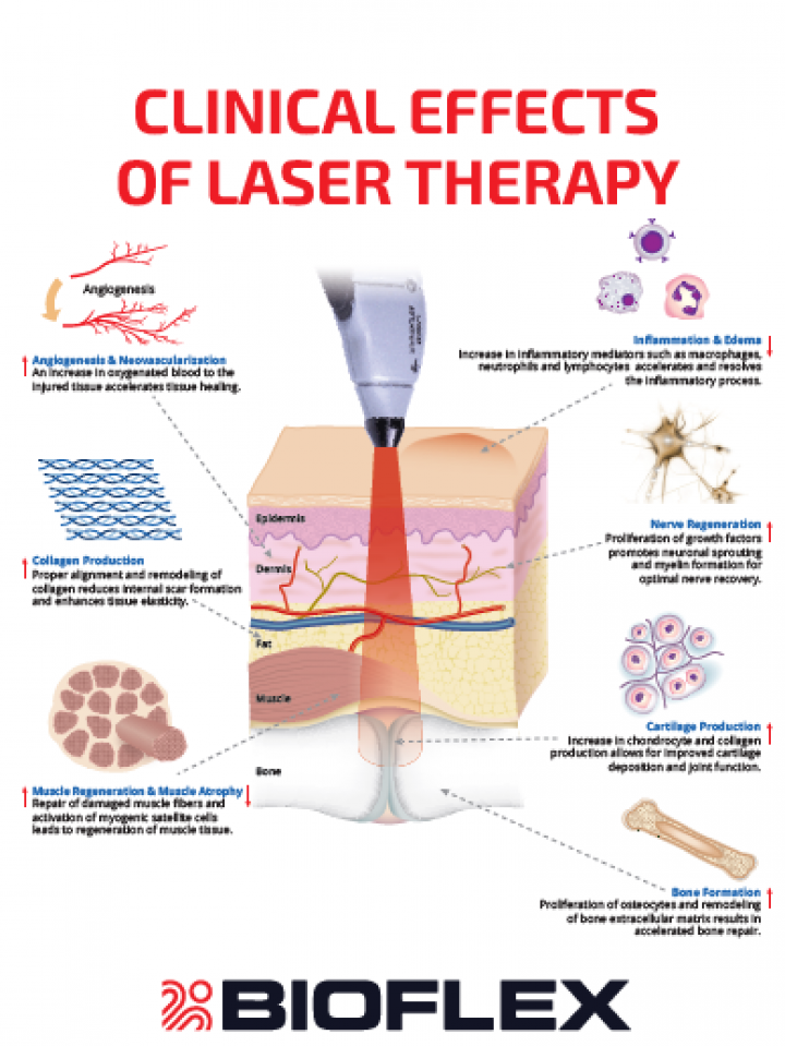 Over 1200 human clinical trials have been published in peer reviewed journals evaluating the benefits of low-level laser therapy (LLLT) or photobiomodulation therapy (PBMT) for arthritis, tendinopathies, sprains, strains, wound healing, fractures, peripheral neuropathies, injured nerves, traumatic brain injuries, temporomandibular joint and numerous other disorders. As a result of these studies, there are 10 clinically proven benefits claims for the BIOFLEX® family of photobiomodulation medical devices: